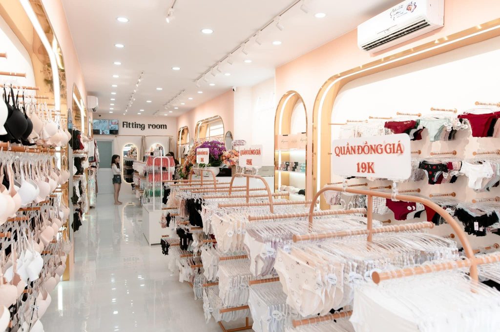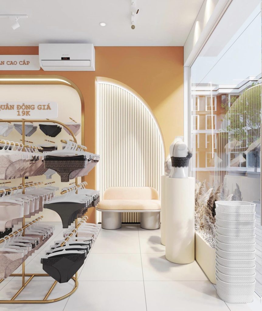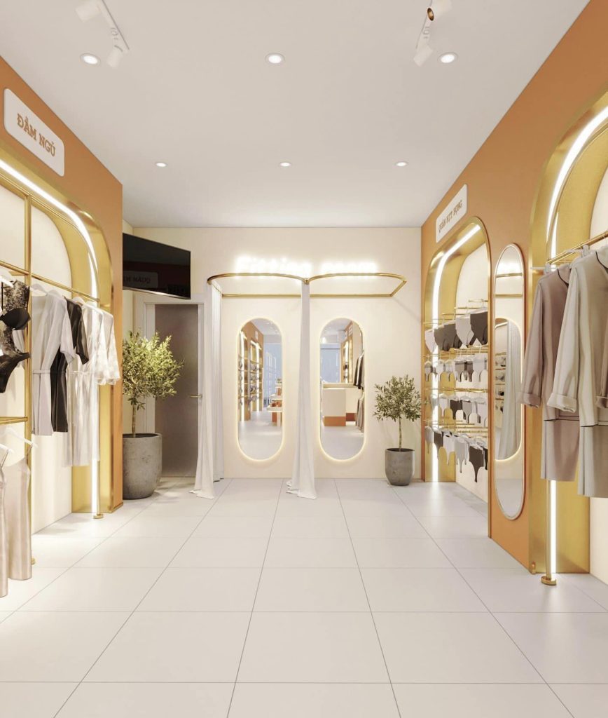 * Toàn bộ nội thất shop (1 quầy thu ngân, kệ treo đồ, đèn trần chiếu sáng, đèn rây hắc sáng, 2 gương đèn led phòng thay đồ, 4 manocanh, 1 ghế da ngồi chờ cho khách, bục trang trí, kệ chứa hàng trên kho,…)