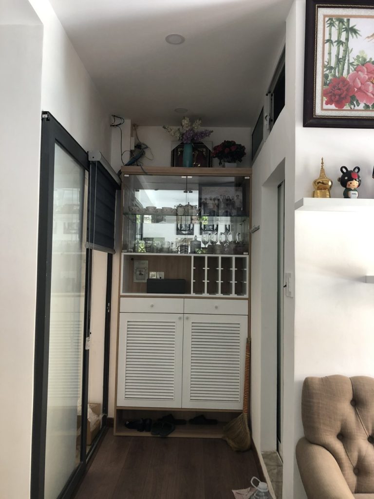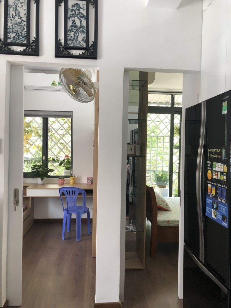 -Nếu một gia đình nhỏ mua để ở thì không cần phải suy nghĩ vì mình đã bố cục lại khá đẹp gồm: Một phòng khách-bếp; 2 phòng ngủ; 1 nhà vệ sinh, sàn gỗ. Không gian thì thoáng khỏi phải suy nghĩ. Nội thất khá xịn gồm giường tủ giá sách liền bộ rất thích hợp cho gia đình có con đang đi học. Tủ bếp, tủ rượu, tủ quần áo, tủ giày….. làm bằng gỗ nội thất An Cường.