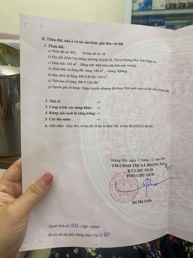 Chính chủ cần bán gấp lô đất ở Khối Tân Đông,phường Quỳnh Dị, thị xã Hoàng Mai, tỉnh Nghệ An