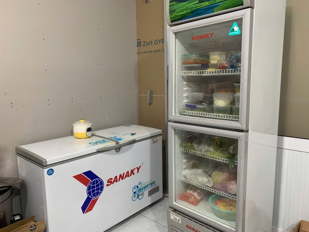 –  2 Điều hòa, 2 tủ lạnh, 7 quạt Treo tường, loa, máy in bill, 4 bếp gas công nghiệp, nồi niu đồ dùng trong bếp, đồ dùng nhiều lắm ạ , mình chỉ liệt kê sơ qua( Đồ đạc mới sắm mới hoàn toàn và dùng được 4 tháng , quan tâm có thể xem trực tiếp ạ )