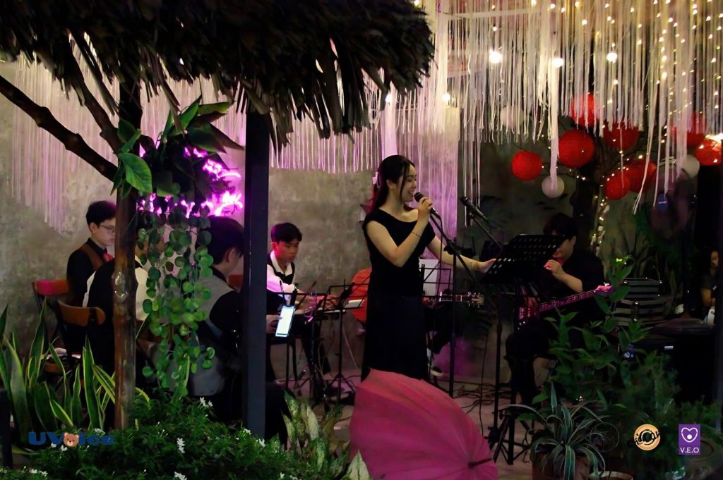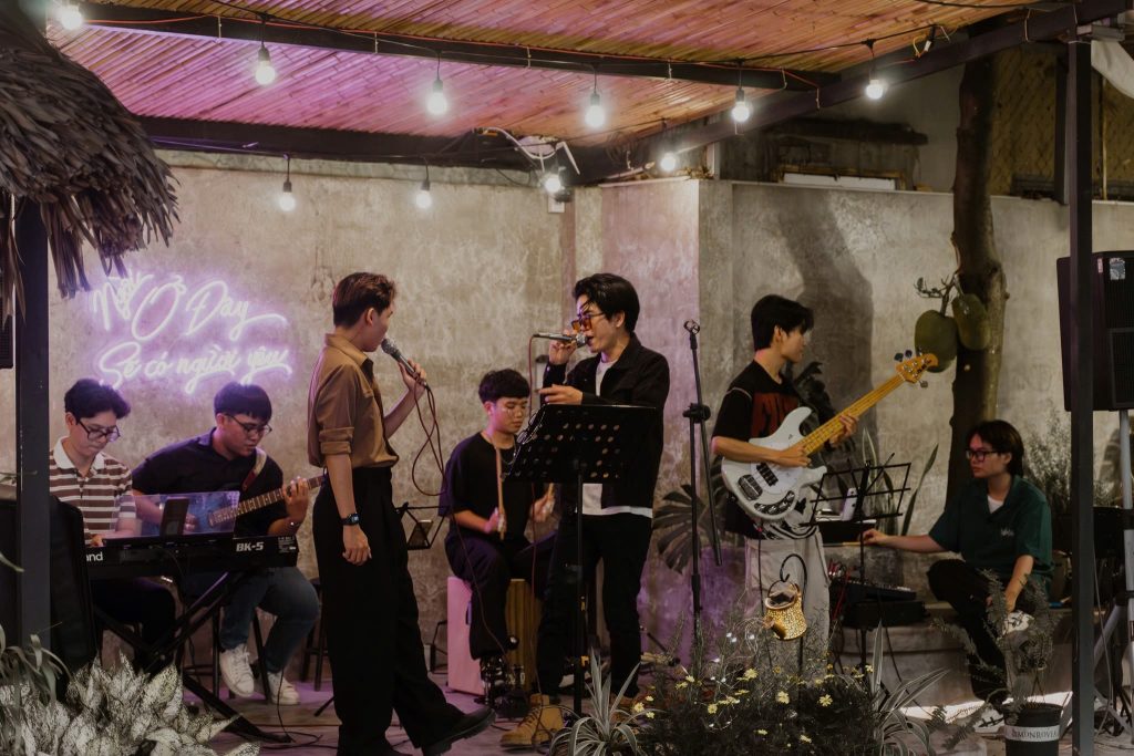 – Vừa cafe vừa tô tượng, võng nằm và có ban nhạc Accoutic.