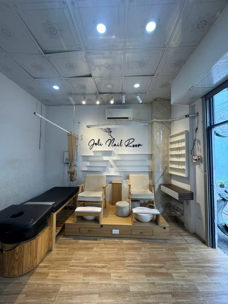 Nội thất cơ bản cho kinh doanh: bàn ghế làm nail, khu vực gội đầu tiện lợi. Rất phù hợp cho các bạn làm dịch vụ làm đẹp!