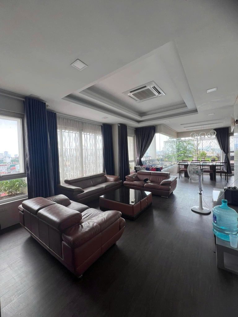 Căn hộ nằm trên tầng cao nhất của toà chung cư nên rất thoáng mát, view siêu đẹp..