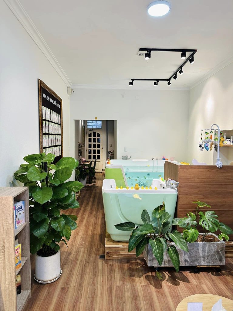 – Bể bơi thuỷ liệu lớn, phao bơi đồ chơi, bể tạo sóng, mát xa bé