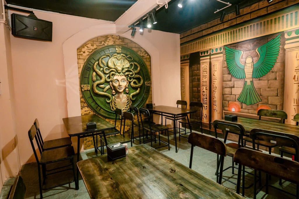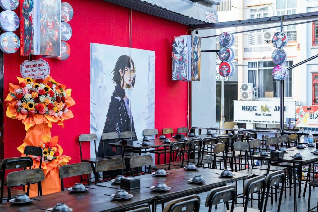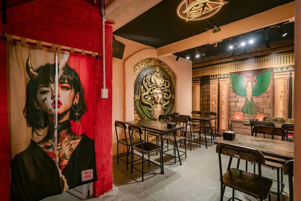 • Quán đã setup đầy đủ: bàn ghế, quầy bar, bếp, hệ thống hút mùi, âm thanh – ánh sáng.