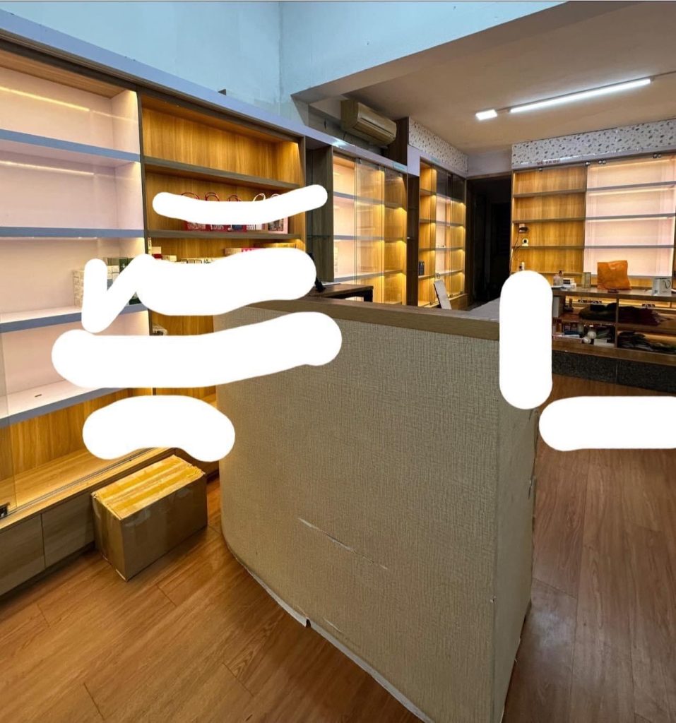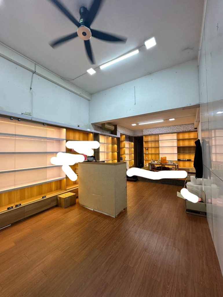 – Diện tích: rộng rãi, có sẵn điều hòa, quạt, cửa kính, tủ trưng bày, đèn led.